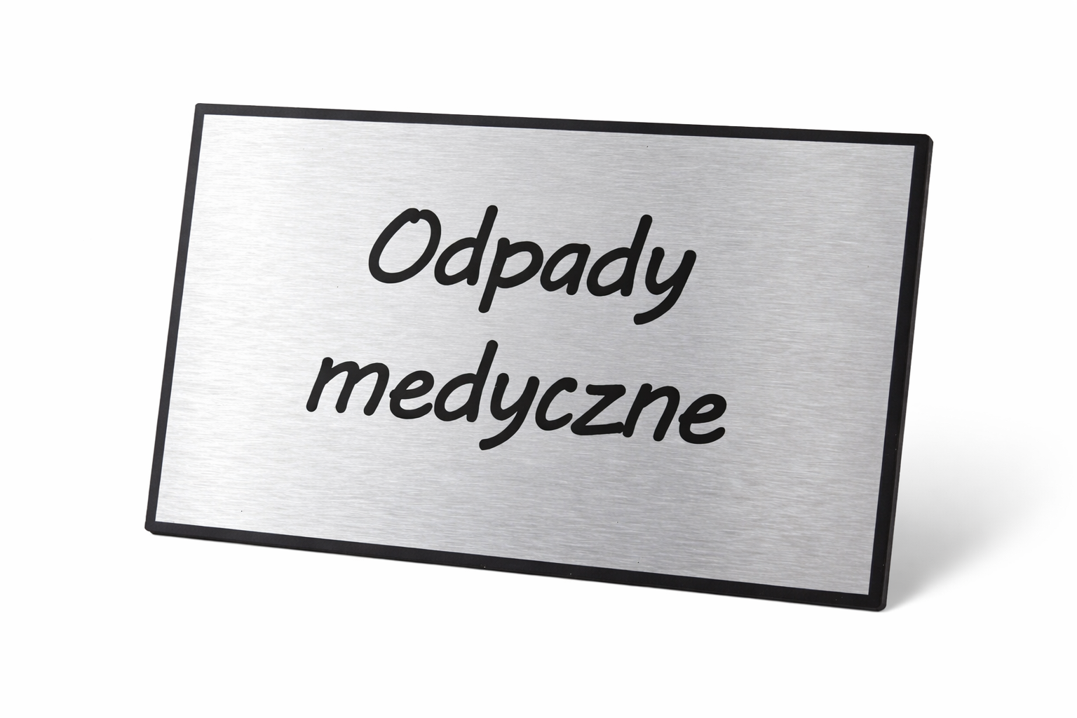 - Kolor Tła: Tło tablicy jest w kolorze drapanego/szlifowanego aluminium, nadając jej nowoczesny i elegancki wygląd.